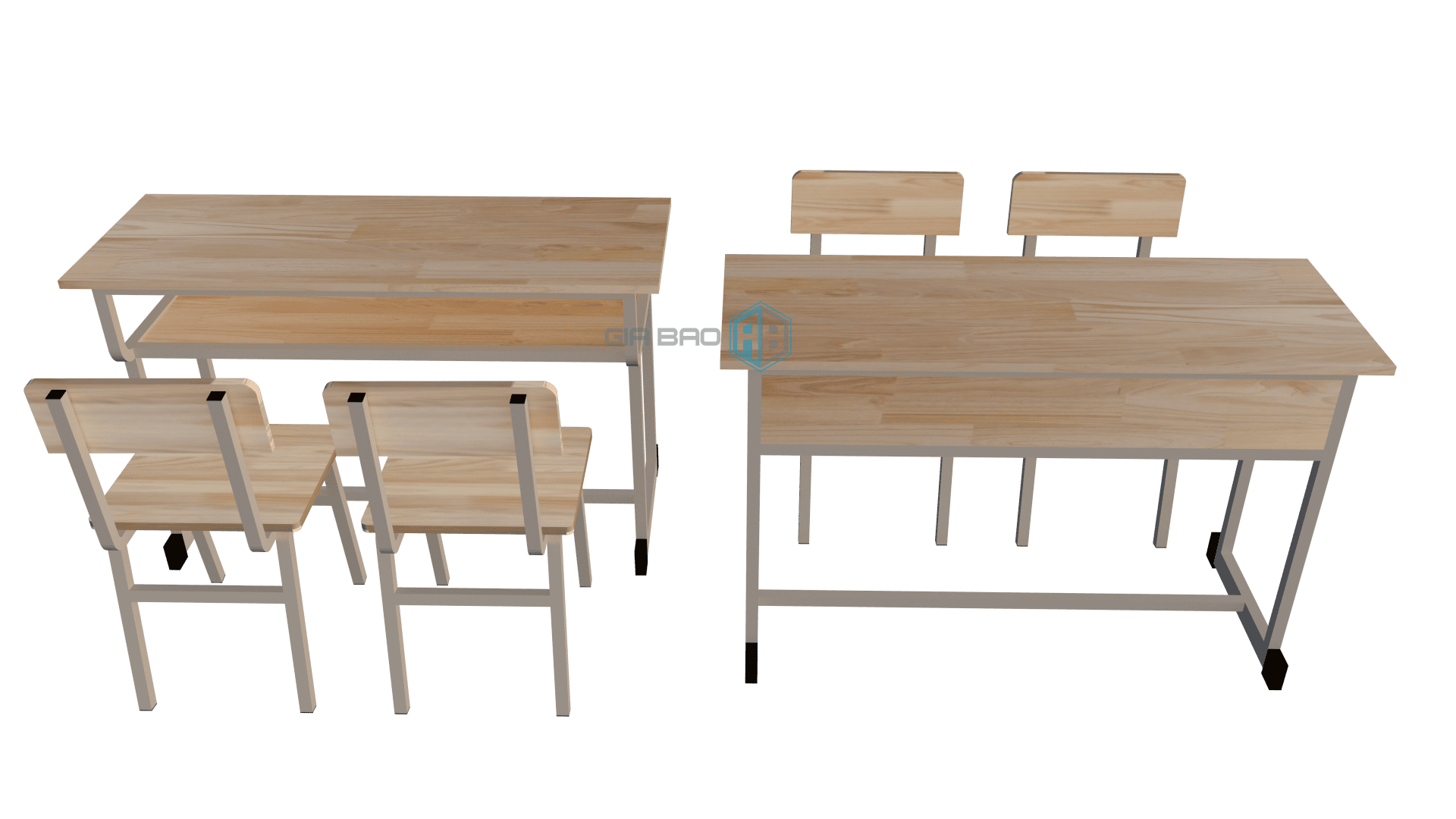 Mặt và hộc bàn: gỗ cao su ghép 18mm, tẩm sấy chống mối mọt, cong vênh, sơn PU 3 lớp. Khung và chân bàn bằng sắt vuông 25 x 25, dày 1-1.4mm sơn tĩnh điện.